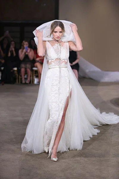 MANY BRIDES STRIVE TO LOOK CLASSICALLY ELEGANT, OTHERS STRUT UP THE AISLE IN SKY-HIGH SLITS AND SOME AIM FOR A BOHEMIAN BEACH STYLE—BUT ONE OF TODAY’S MOST EMBRACEABLE TRENDS IS PURE ROMANCE. FEATURING SOFTER LINES AND FRANKLY FEMININITY SILHOUETTES, IT MAY BE A REACTION TO OUR OVER-DIGITIZED AGE—OR, SIMPLY, A YEARNING FOR A MOMENT OF GRACE AND BEAUTY. HALLMARKS OF THE STYLE INCLUDE DETAILS DRAWN DIRECTLY FROM NATURE, NOSTALGIC ACCENTS LIKE HOODS AND PEPLUMS, DELICATE EMBELLISHMENTS SUCH AS VINTAGE LACE, EVEN ELEMENTS DRAWN FROM TODAY’S LINGERIE MOVEMENT. TO AVOID A SUGAR OVERLOAD, KEEP THE ATTITUDE PLAYFUL AND LIMIT YOURSELF TO JUST ONE OR TWO FLIRTATIOUS TOUCHES—A PINK SASH, A SWEETHEART NECKLINE, A SILK FLORAL ACCENT. ISN’T IT ROMANTIC?