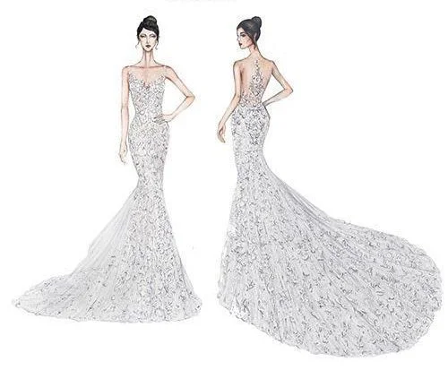 Antonella Roccuzzo married Argentinian soccer star, Lionel Messi, in their hometown of Rosario, Argentina last Friday, June 30, wearing a custom Rosa Clará gown. The mermaid-style gown featured a deep sweetheart neckline with delicate French lace straps and a heart-shaped back with guipure lace appliqués and silk tulle. The making of the exquisitely detailed gown took over 200 hours, but as Rosa said herself,