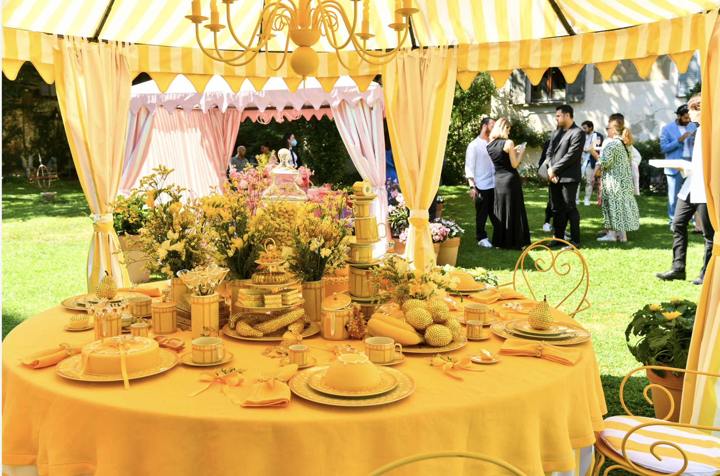 Swarovski hosted a colorful tea party at Salone del Mobile in Milan to present its debut tableware collection, created in collaboration with world-renowned porcelain artisan Rosenthal. Guests were invited to the beautiful grounds of Casa degli Atellani, where they could discover and enjoy the Swarovski x Rosenthal Signum collection.