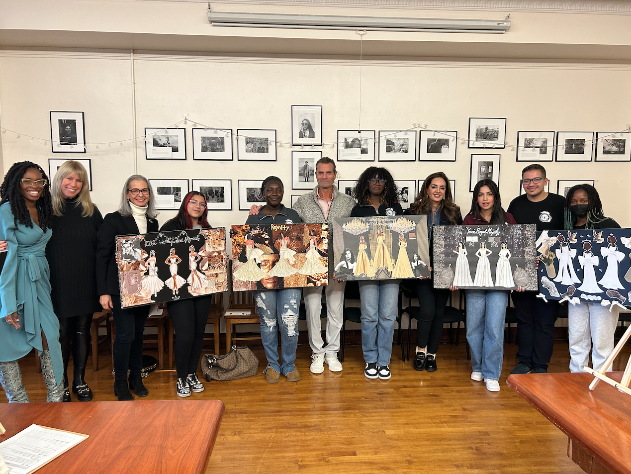 The industry partnership program was conceived with Lifestyle Commentator and Board member of THE High School of Fashion industries Robert Di Mauro and Mara Urshel, President of Kleinfeld bridal. The competition starts with Kleinfeld hosting a master class on trends at the store. Next the students design their mood boards. Expert Judges from the bridal industry come in to select 5 sketches. The students are divided into 5 teams to help the winner of the sketch produce and present their design. Next step, Madeline Gardner of MoriLee hosts her master class for the students on producing the garments as well as donating the fabrics for their designs.