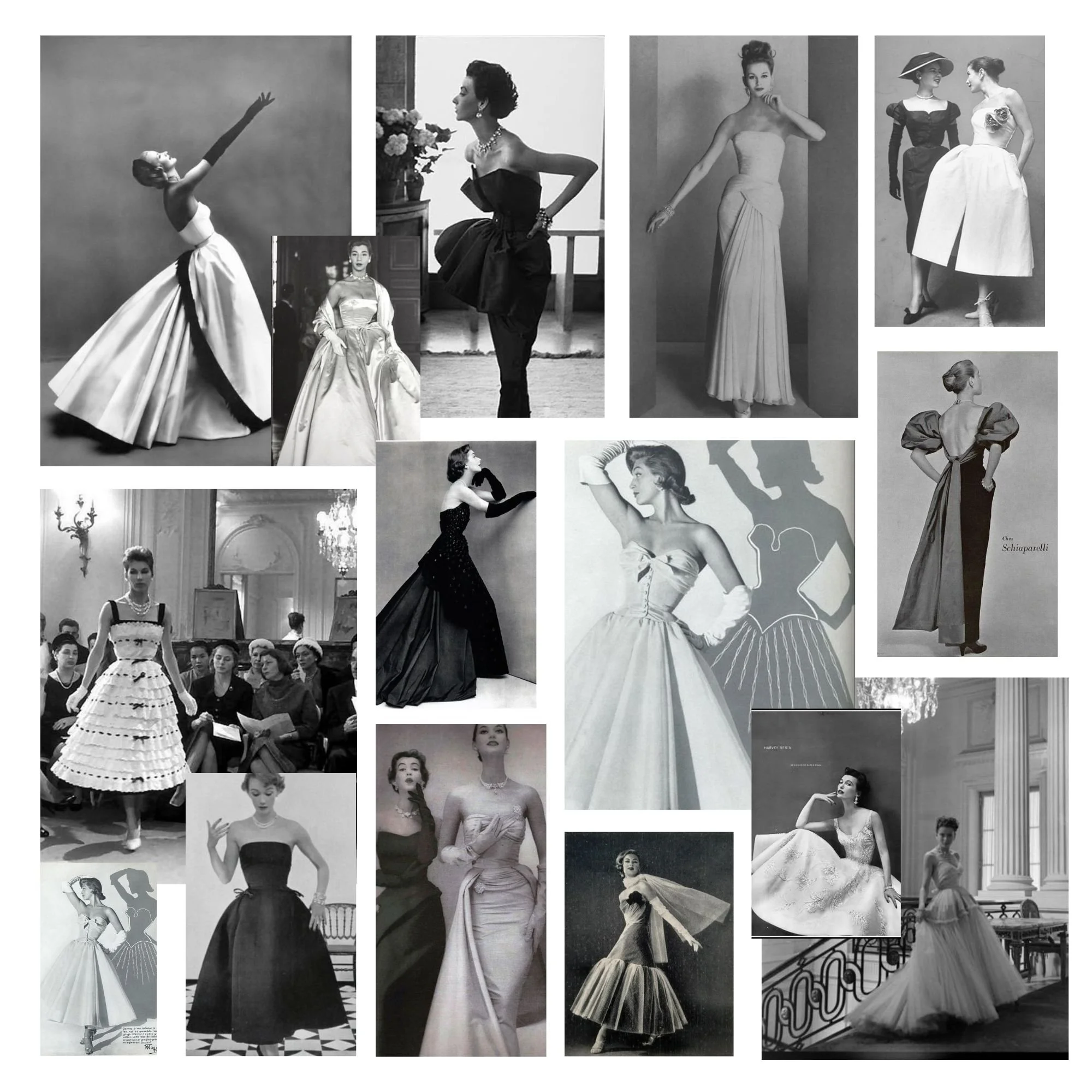 I continue to be inspired by the Haute Couture especially from the late 1940’s to the mid 1950’s when the newer Parisian couturiers…Dior, Balmain, Jacques Fath and Balenciaga were having their big first moments. I love the Post War opulence and excess… the sophistication and chic of that period, and the optimism. These gowns juxtaposed with the black and white fashion photography of that era has created an indelible impression on my design aesthetic!